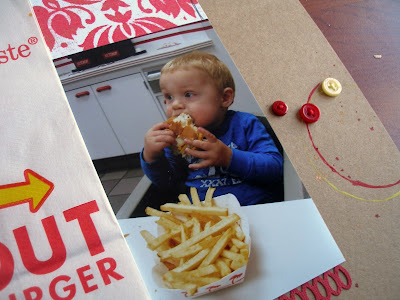 I made ketchup and mustard rings with paint, used an actual bag from the restaurant for my title and journaling, and used some Lily Bee papers to bring out the red and yellow. I wanted to include so many photos that I had to do a 2-pager, and I love how it turned out!