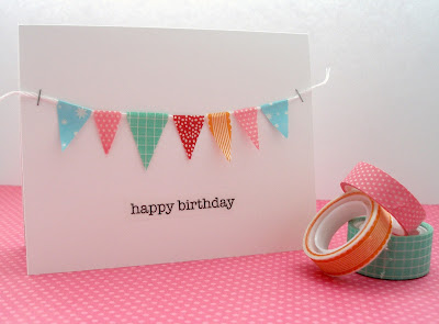 I created this banner by sticking tape to itself over a piece of embroidery thread. I trimmed the pieces into triangles and secured the banner with mini staples.